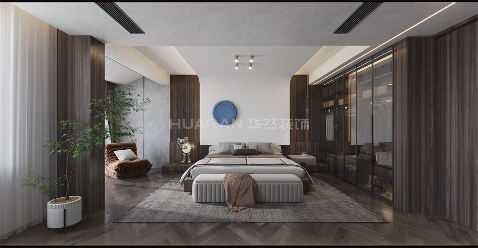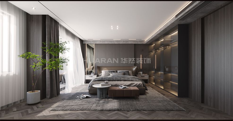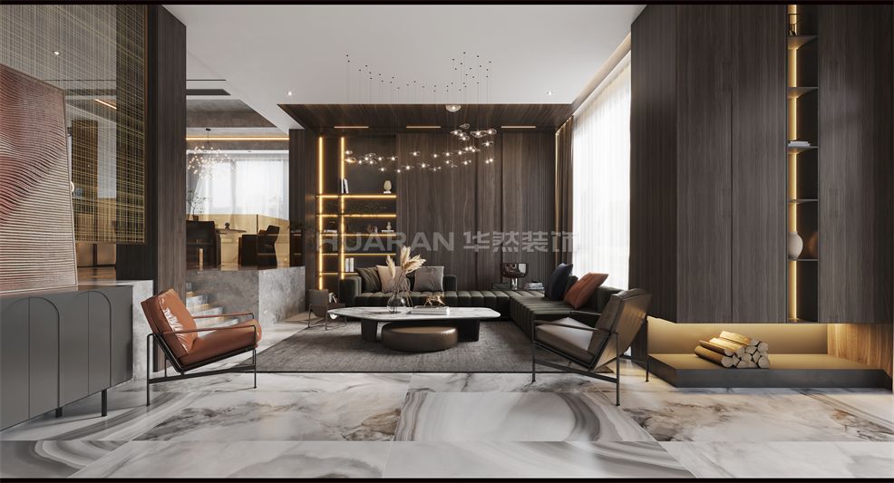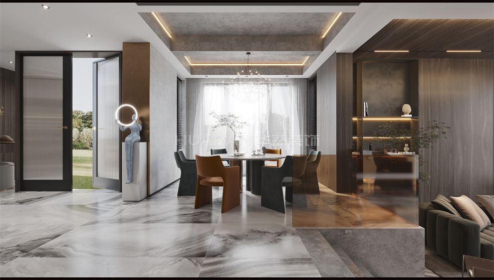 在深木色結合灰色系中 營造低調沉穩且自由舒適的家居氛圍詮釋自然與藝術的棲息之所 低飽和度的軟裝家居與木色、黑色的融合靜謐高級的沉穩色調散發簡約的美感必也恰到好處的點綴出現代簡約的氛圍感整體以高級灰為主基調來打底,入眼之處盡顯沉穩