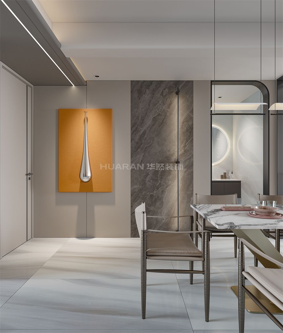 打破空間重新整合,即去掉廚房隔墻.鞋柜~休閑功能組合,形成環繞動線十玄關端景,讓整個空間徹底流通起來,讓光線盡量進去到室內空間,做到隔而不斷. 公衛與隔壁雜物間重新整合,優化設計.主衛三分離,酒店式設計,讓空間變得高級. 主臥借用客廳面積,滿滿的儲物功能