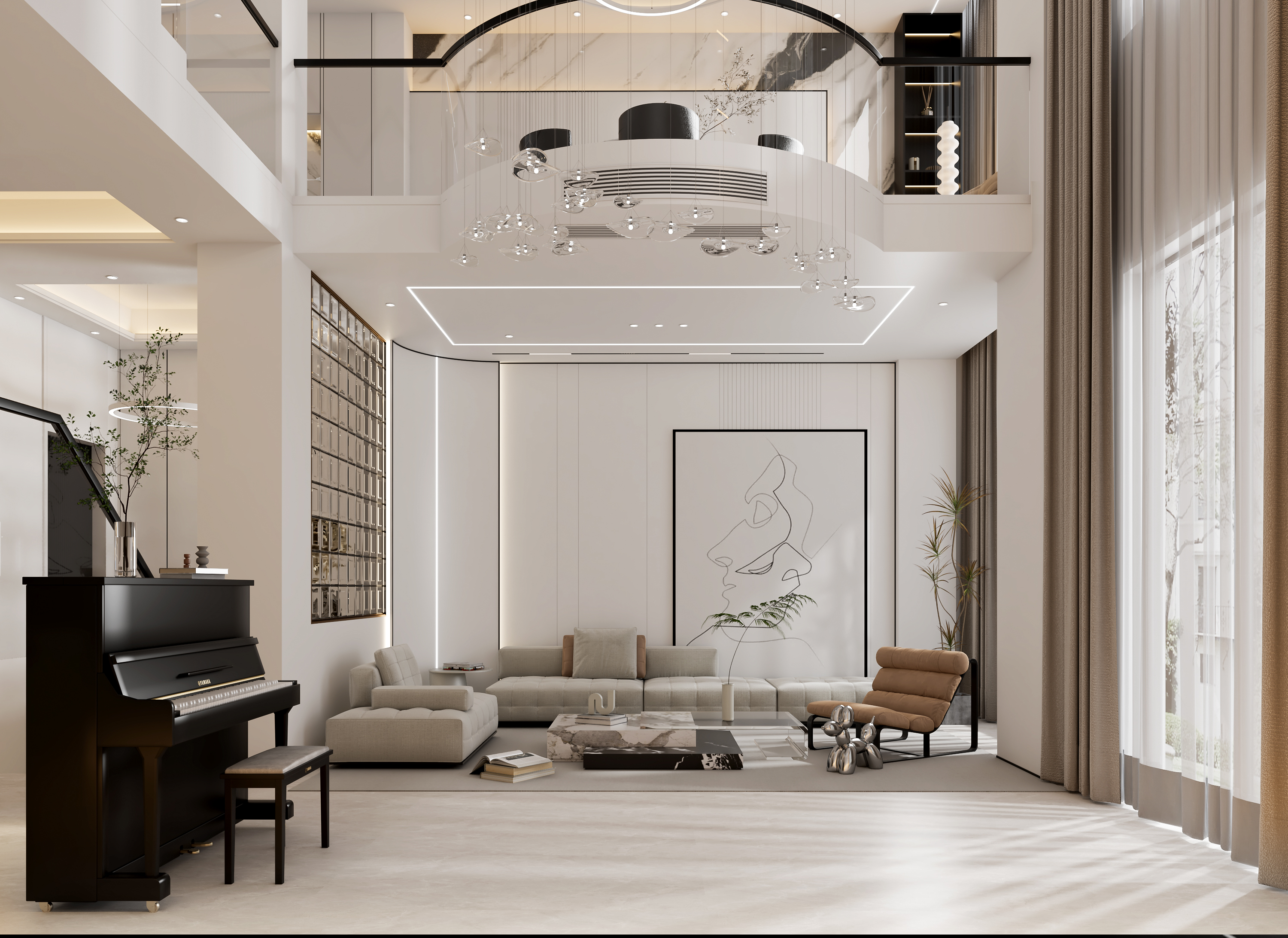 此外,短邊墻上有門洞的話,可以通過隱形門的設(shè)計(jì),讓隱形門與電視墻造型呼應(yīng),讓電視墻保持相對(duì)完整大氣的設(shè)計(jì)。